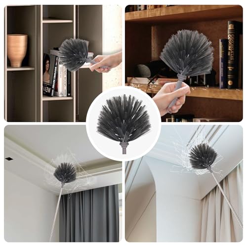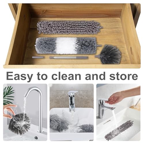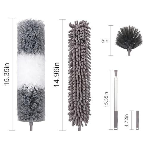 Excellent 5PCS Dusters for Cleaning: This Feather Dusters Kit includes upgrade stainless steel Telescopic Pole(Shrink-Expand Size: 15.35in-100in), 1 Bendable Microfiber Duster Head, 1 Bendable chenille duster head, 1*cobweb duster head, 1* short handle. The Feather Dusters Kit completely meet all your cleaning needs