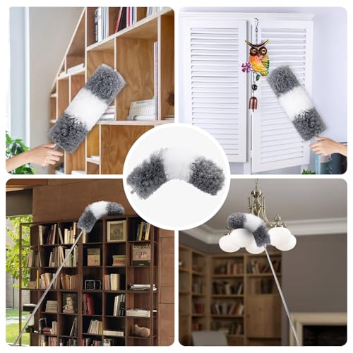 Extendable Duster With 3 Multi Convertible Head: Microfiber chenille feather duster heads for cleansing totally different sections.The mushy, effective fiber microfiber feather duster head may also help clear properties and priceless ornamental work that want care, and the cobweb duster head can very simply clear cobwebs in corners in addition to floating mud from air conditioners, home windows